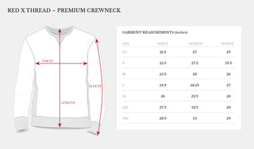 In order to best determine fit, we advise comparing our garment’s measurements to a similar garment you already own. Lay your garment flat and take all measurements from the outside of the garment. *Designed for a perfect fit on an average body type. Size up if you like a loose or baggier fit.